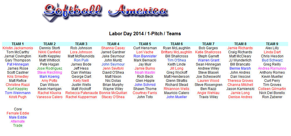 Memorial Day 1-Pitch | Men's Fall Classic | Labor Day 1-Pitch | Memorial Day 1-Pitch | Labor Day 1-Pitch | |||||||
